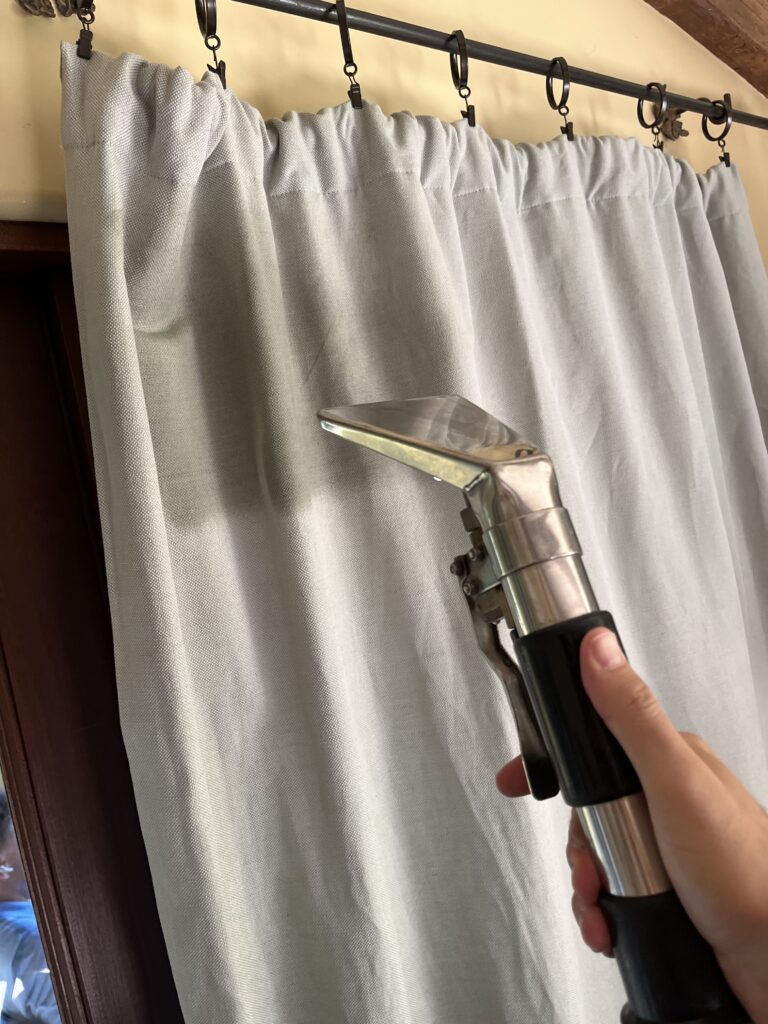 Steam Cleaning: A handheld steamer can refresh and sanitize curtains without removing them. Ensure the fabric is suitable for steaming to avoid damage. Loft Curtains